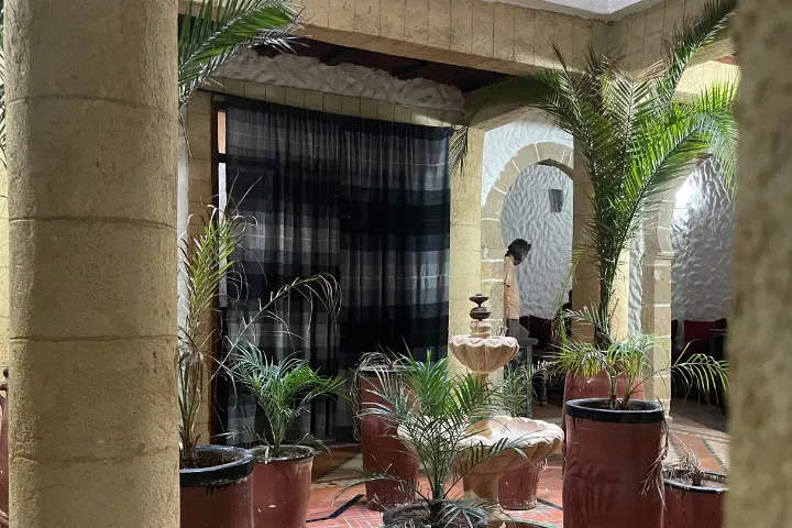 Do riadu wchodzi się z tętniącego życiem targu pełnego pamiątek, jedzenia i artystów. Wejście prowadzi przez malowniczą bramę ze złotnikiem i sklepem z ręcznie tkanymi dywanami. Za bramą panuje spokój, a grube mury tradycyjnej siedziby pozwalają odpocząć od miejskiego gwaru.
