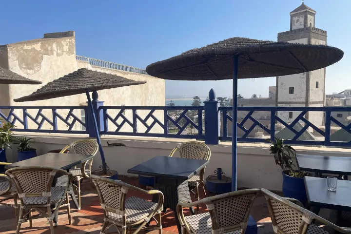 Riad oferuje zaciszny dziedziniec z fontanną oraz duży taras na dachu z widokiem na Medynę i ocean (plaża ok. 300 m), idealny na jogę lub relaks. Do dyspozycji Gości jest bezpłatne WiFi i całodobowa recepcja. Codziennie rano na tarasie serwowane jest tradycyjne marokańskie śniadanie z naleśnikami, dżemami i lokalnymi specjałami. Wieczorami można podziwiać zachód słońca nad oceanem i murami medyny chroniącymi niegdyś miasto przed piratami.